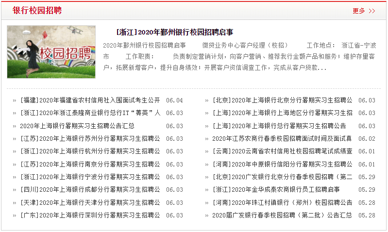 内含银行校招解读、网申模板、十大银行校招考试说明、校招面试等考生关注的焦点内容