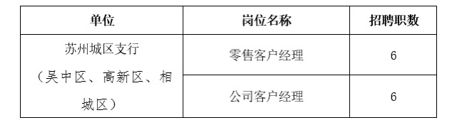 原标题:苏州农商银行社会招聘公告(苏州地区)
