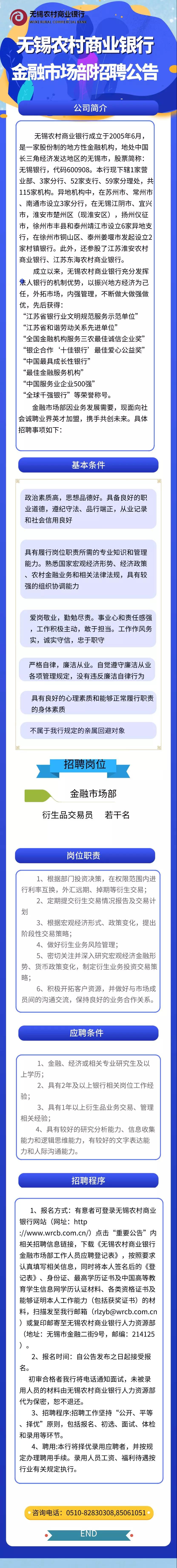 [江苏]2019无锡农村商业银行金融市场部招聘公告