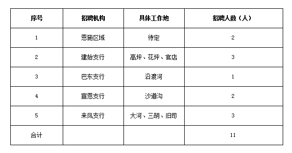 因业务发展需要,现面向社会公开招聘有志于投身金融发展和素质优秀的大学毕业生,共创恩施兴福村镇银行美好未来!