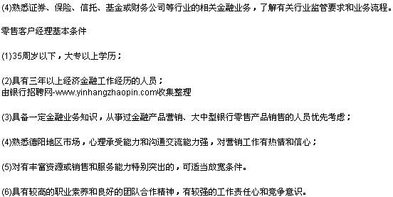 (3)熟悉银行存贷款业务、票据业务等,了解本地市场环境;3年以上信贷工作经历和良好的社会关系基础者优先考虑;