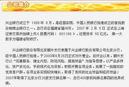 > 兴业银行股份有限公司北京朝外支行招聘信息