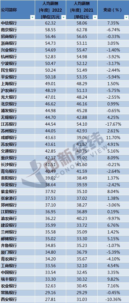 而最新的银行员工平均薪酬中,相较于2021年,A股42家上市银行中,2022年半数银行的员工薪酬上涨,超九成银行员工人均薪酬超过30万元。[3]