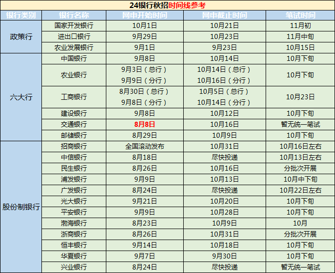 字少事大!2024银行秋招大幕即将全面开启!