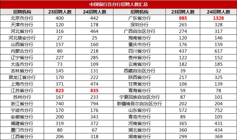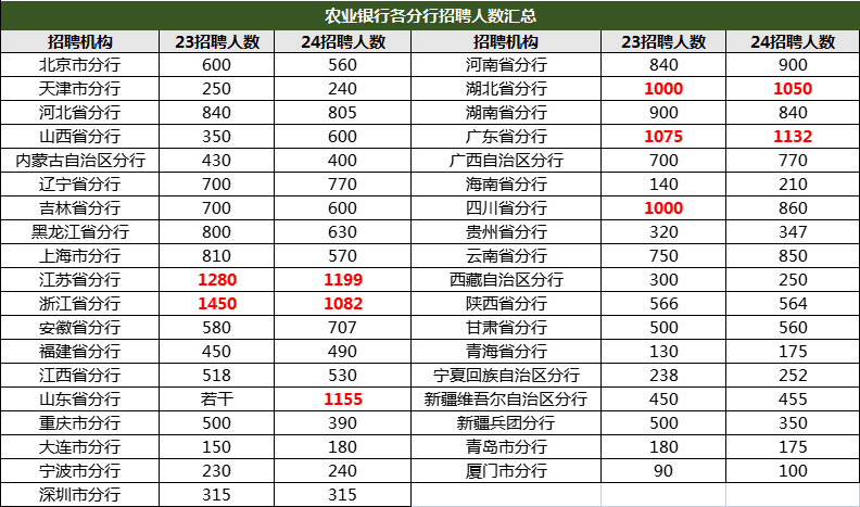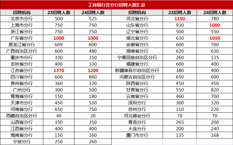 我们以国有四大行举例,对于各个分行来说,招聘人数则并不全是一样的,也就是说,同学们要根据各分行招聘的人数选择合适的招聘机构。