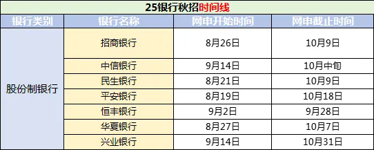 盘点2025年政策性银行、六大行、股份制银行秋招进程