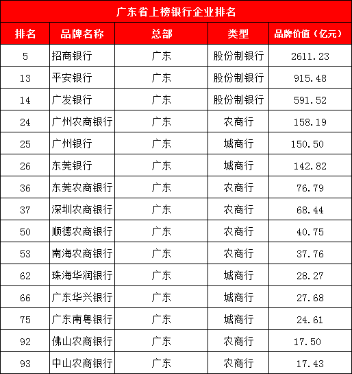 下面,我们就用数据说话,盘点广东的15家上榜银行企业。