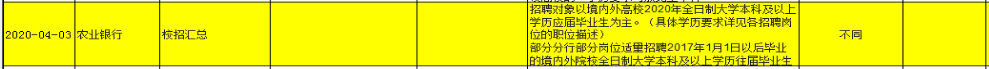 2020银行/农商行春季校招网申及笔试时间更新表(2020年04月03日)