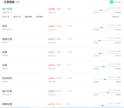 柜员营销压力相对较小,但是还是会有,而且有负激励,就是完不成会降职等,过了试用期后基础工资根据职等来,最低可能就一个月几百这样子,总之在小城市工资还可以,而且可以存到钱(包吃是一笔不小的节约)缺点是加班严重,休息时间极少,早上七点多就去上班,晚上八点下班也是常事,柜员人数不够,每周都是单休,且不能请假,请了假后面是要还别人班的,理财岗属于看领导,领导自己没本事手下压力就大,加班也是家常便饭,最自由的大概就是零贷和企金。