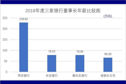 首先,看相关部门核准薪酬情况。据陕西省国资管理部门披露的信息,2018年度长安银行董事长年薪为78.53万元(其中薪酬62.39万元、社保福利16.14万元),秦农农商银行行长郝光耀 74.16万元,均高于同期时任陕西省联社主任张全明66.38万元的年薪。