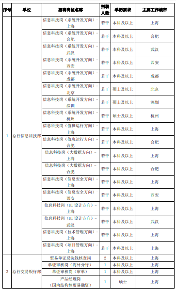 浦发银行招聘职位表,每年的招聘公告里都会有,东吴教育宋老师特别提醒浦发银行一名学生最多报两家单位,每家单位最多报两个岗位;须明确志愿顺序。