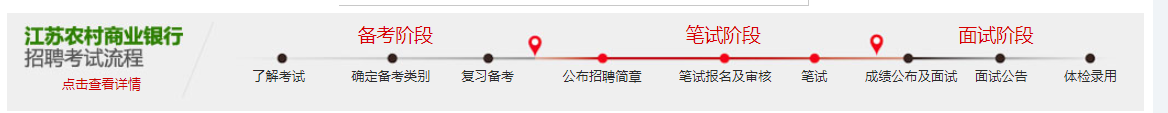 1.江苏农商行的招聘5个环节进行:报名和初选、笔试、资格复审与面试、体检和政审、聘用。