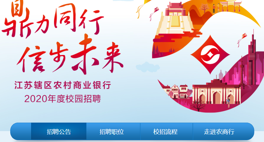 1.江苏农商行的网申渠道有PC端的招聘网址http://campus.51job.com/jsnxzp2020 <http://campus.51job.com/jsnx>;手机端“江苏辖区农商银行招聘”公众号。