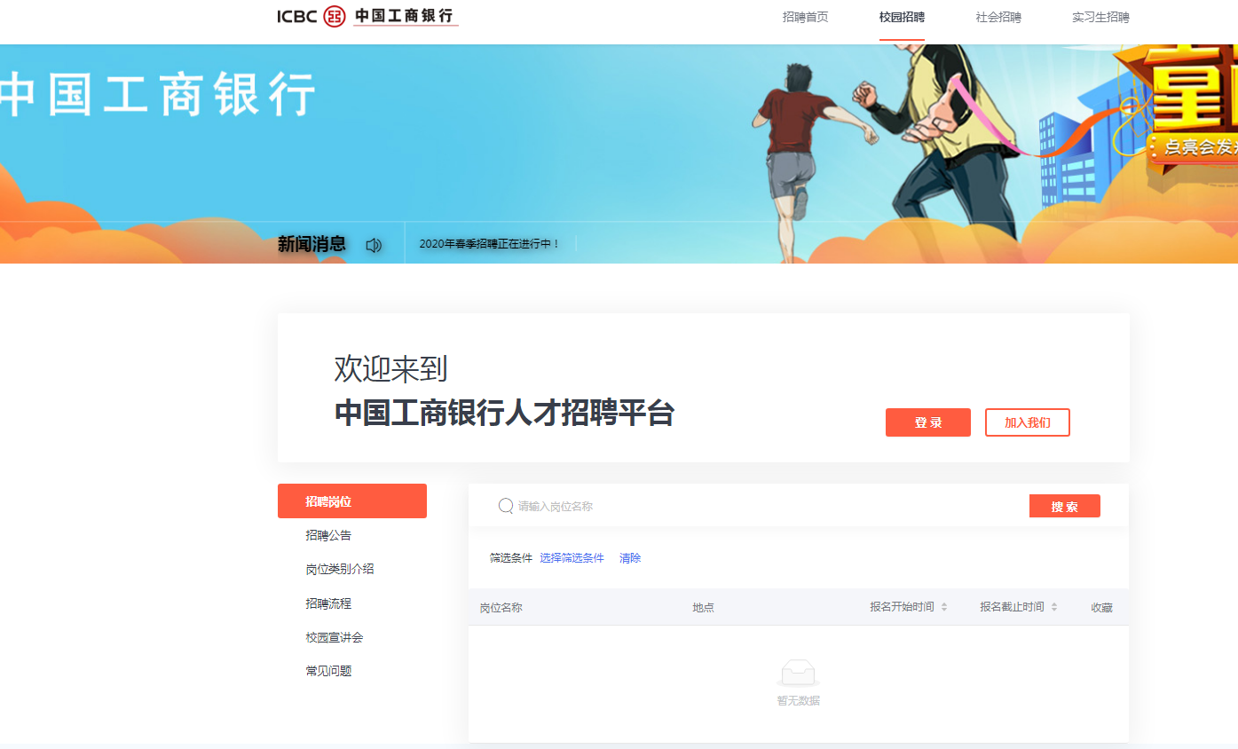 1.工商银行的网申网址主要是通过官网参加校园招聘栏目下的招聘岗位投递https://job.icbc.com.cn/pc/index.html#/main/school/home/post,然后进行注册-登录-在线填写简历信息-投递岗位。