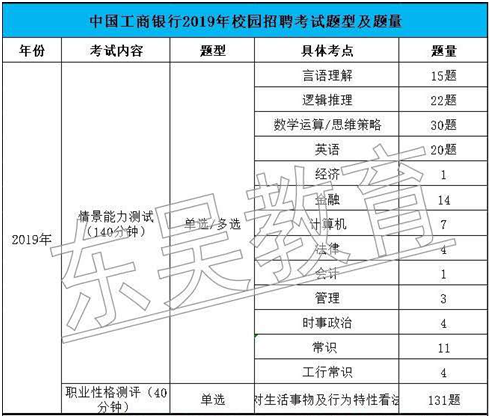 中国工商银行2021年校园招聘考试题型及题量