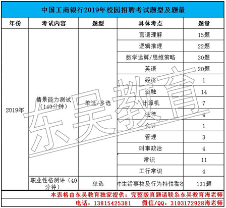从上图可以看出工商银行的笔试内容很丰富,从常见的EPI到专业知识以及时政、常识、行情行史和性格测试都会有所涉及,每年的笔试内容变化基本不大,所以通过本图我们可以更有针对性的进行笔试学习。
