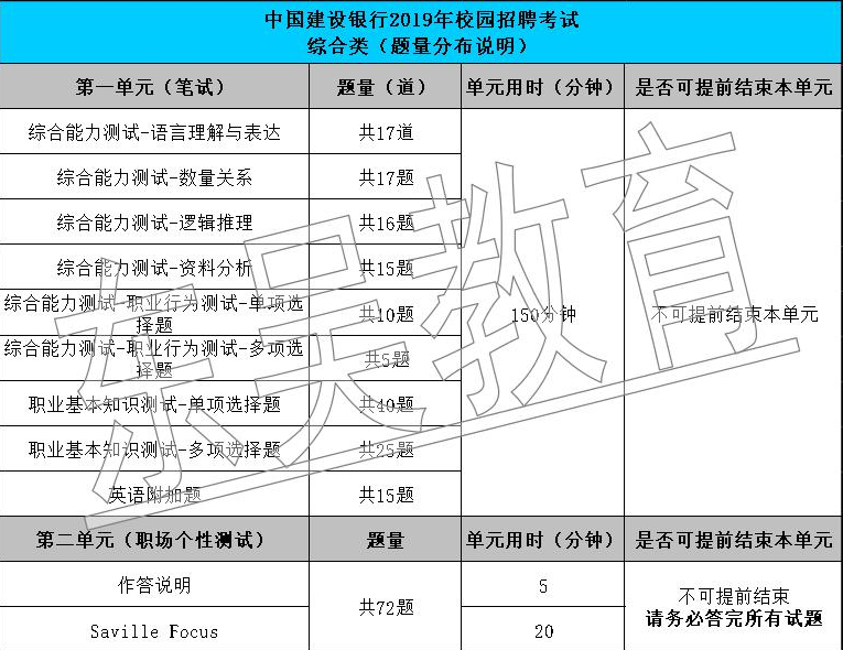 2.建设银行EPI考试题型主要以选择题形式出现。主要包括言语理解、数量关系、判断推理、资料分析、常识五大部分。