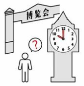 3、博览会开幕这天,你早早的来到博览会门口。你看了一下门口的大摆钟,如下图所示: