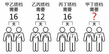 【东吴教育解析】合作工程问题。根据题干甲乙合作完成的时间是16天,乙丙合作完成的时间是12天,乙丙合作完成的时间是16天。故假设总工作量为48,则甲乙的效率和为48/16=3,乙丙的效率和为48/12=4,丙丁的效率和为48/16=3,则甲乙丙丁的效率和3+3=6,故甲丁的效率和为6-4=2,因此甲丁合作完成的时间需要48/2=24天,选D选项,