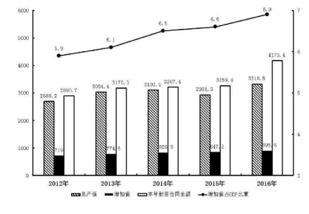 2016年,S省建筑业增加值共完成895.6亿元,同比增长5.7%,占GDP的比重上升,达到6.9%,比上年提高了0.3个百分点。