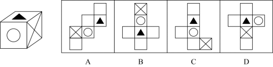 【答案】C。【东吴教育解析】以三角形面为起点,圆形面为路径,叉叉面为终点画时针,题干中为逆时针方向,C选项为逆时针方向,而D选项为顺时针方向,故C选项正确、D选项错误;A、B选项中叉叉面与三角形面互为相对面,相对面有且只能出现一次,与题干不符,均为错误选项排除。所以本题答案为C选项。