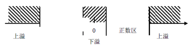 在浮点数表示和运算中,当一个数的阶码大于机器所能表示的最大阶码时,产生“上溢”,如图2-1 所示。上溢时机器一般不再继续运算而转入“溢出”处理。当一个数的阶码小于机器所能表示的最小阶码时,产生“下溢”,此时溢出的数绝对值很小,通常将尾数各位置为0,按机器零来处理,此时计算机可以继续运行。