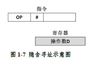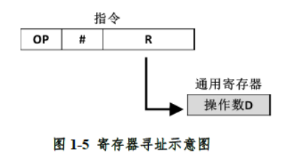 指令中地址码部分给出某一通用寄存器的编号,所指定的寄存器中存放着操作数,如图1-5 所示。它有两个明显的优点:一是从寄存器存取数据比主存快得多;二是由于寄存器的数量较少,其地址码字段比主存单元地址字段短得多。