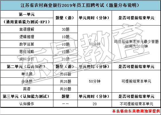 2021江苏农商行校园招聘考试内容暂未公布,根据往年情况,江苏农商行校园招聘笔试内容科目分为:通用素质能力测试(EPI)、综合知识(包括英语)、认知能力测试三个部分。江苏农商行招聘考试历年真题参考东吴教育出版的《江苏农村商业银行招聘考试历年真题(2020最新版)》,此书包括2014-2019年六年完整版江苏农商行历年真题及极致解析。