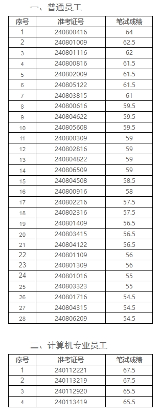 根据《繁昌农村商业银行2024年社会招聘简章》,按笔试成绩从高到低排序,现公布入围面试人员名单: