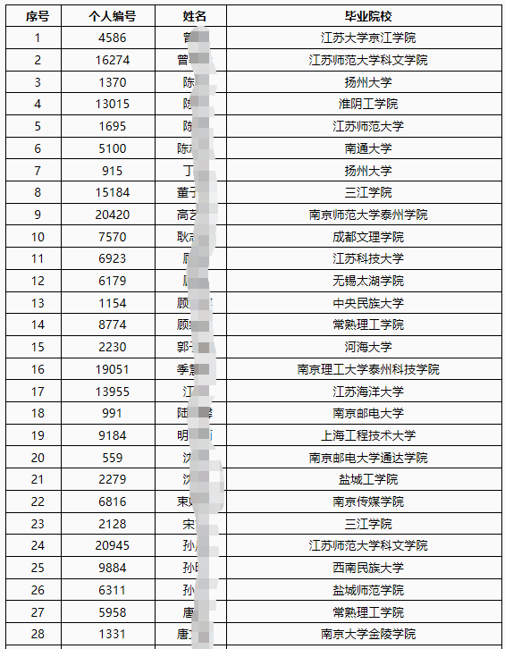 2023年江苏大丰农村商业银行校园招聘面试人员名单