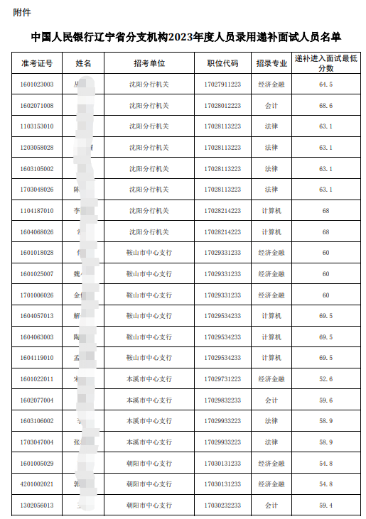 附件:中国人民银行辽宁省分支机构2023年度人员录用递补面试人员名单.pdf