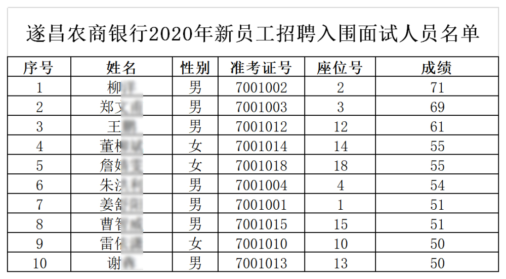 按照《遂昌农商银行2020年新员工招聘公告》规定,现将招聘考试面试入围人员名单进行公布,面试具体时间、地点将另行通知,请入围面试考生保持手机畅通!