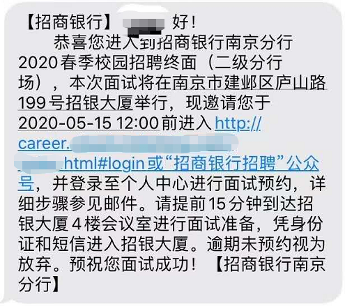 2020年招商银行南京分行春季校园招聘终面(二级分行场)通知