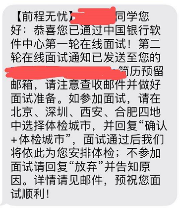 2020年中国银行软件中心春季招聘第二轮在线面试通知