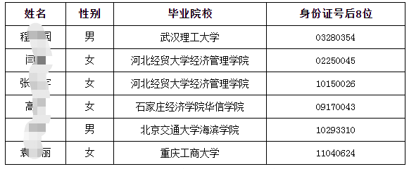 邯郸银行审计岗招聘工作经过报名、初筛、资格审查、面试,已选出6名拟录用人员,名单如下: