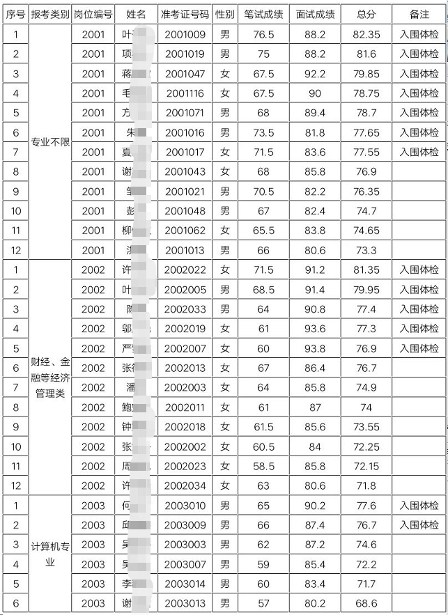 3.体检具体时间、地点再另行通知,请入围体检的考生务必保持手机通畅。
