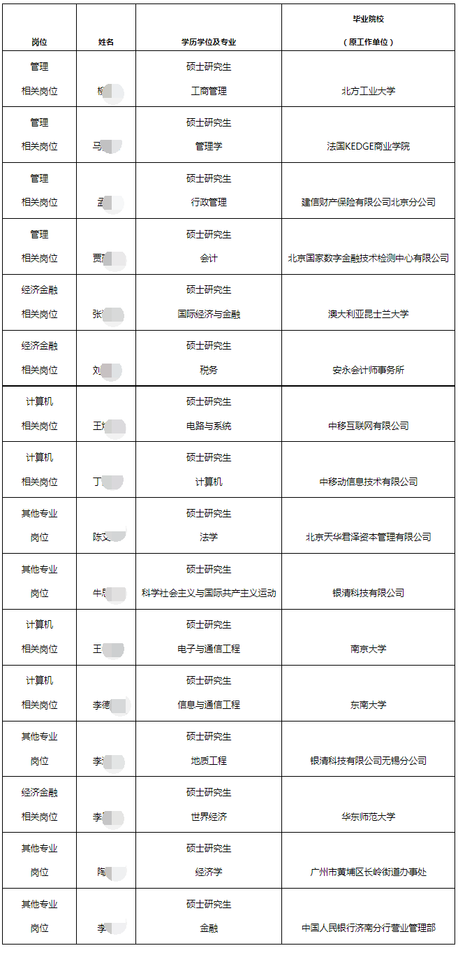 2022年中国人民银行清算总中心第三批次事业编制拟聘用人员公示