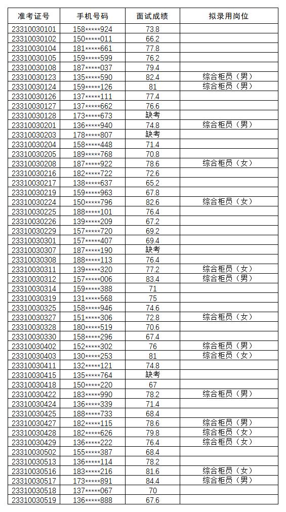 2023年路桥农商银行新员工招聘面试成绩及拟录用人员名单公布