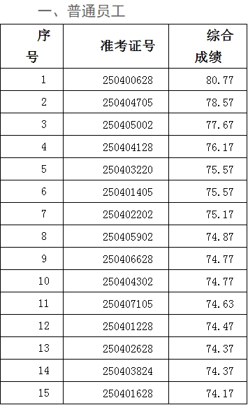 根据本行2025年社会招聘简章,按考生笔试、面试综合成绩(笔试成绩占比60%、面试成绩占比40%)排名,现将拟录用人员公示如下: