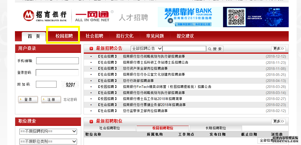 方式二:关注“招商银行招聘”微信公众平台,点击“校园招聘”,选择华南地区广州分行,申请感兴趣的职位并投递简历。