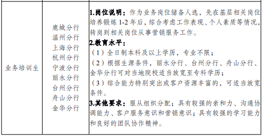 具体报名条件请参考招聘公告,详见《2020年温州银行春季校园招聘公告》。