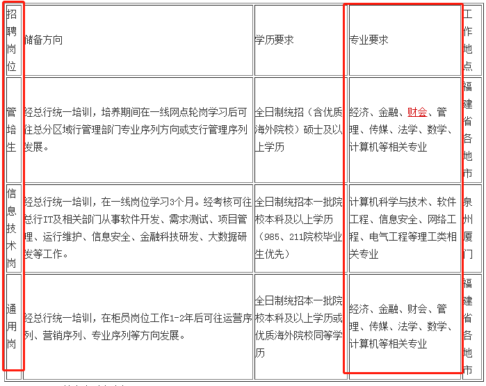 具体岗位报考专业要求请参考官方招聘公告,详见《2020年泉州银行春季校园招聘公告》。