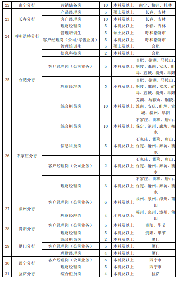 具体岗位及职位表请参考各分行招聘公告,详见《2020年浦发银行春季校园招聘公告汇总》。