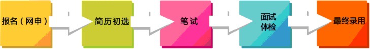 包含报名、简历初选、考试、面试、体检、录用等环节。