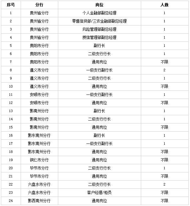 2017年中国邮政储蓄银行贵州省分行社会招聘公告