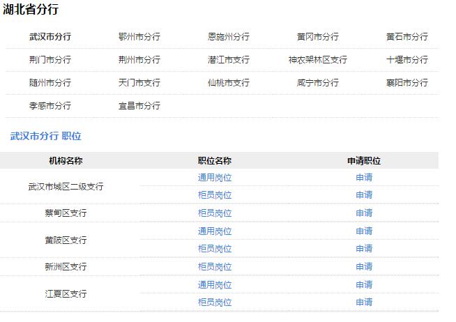 总行各部门、各直属单位专业岗位;各分行通用岗位、柜员岗位。具体招聘岗位及招聘条件详见各机构职位发布页面。