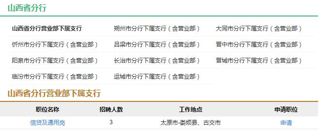 1、招聘单位包括总行机关和省级分行。