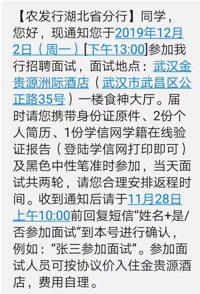 [湖北]2020年中国农业发展银行湖北省分行校园招聘面试通知