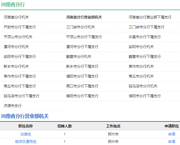 信贷及通用岗(河南省分行机关、河南省分行营业部机关)