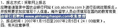 中国农业银行辽宁省分行是中国农业银行辖属一级分行,拥有较雄厚的资金实力、遍布城乡的网点、领先的网络优势,具有较强竞争力、业务品种齐全、服务手段先进的大型国有商业银行。为加强员工队伍建设,加快业务发展,诚聘2008届高等院校应届毕业生。热忱期待携手同行,伴你成长,共创辉煌。现将有关招聘事宜公告如下:
